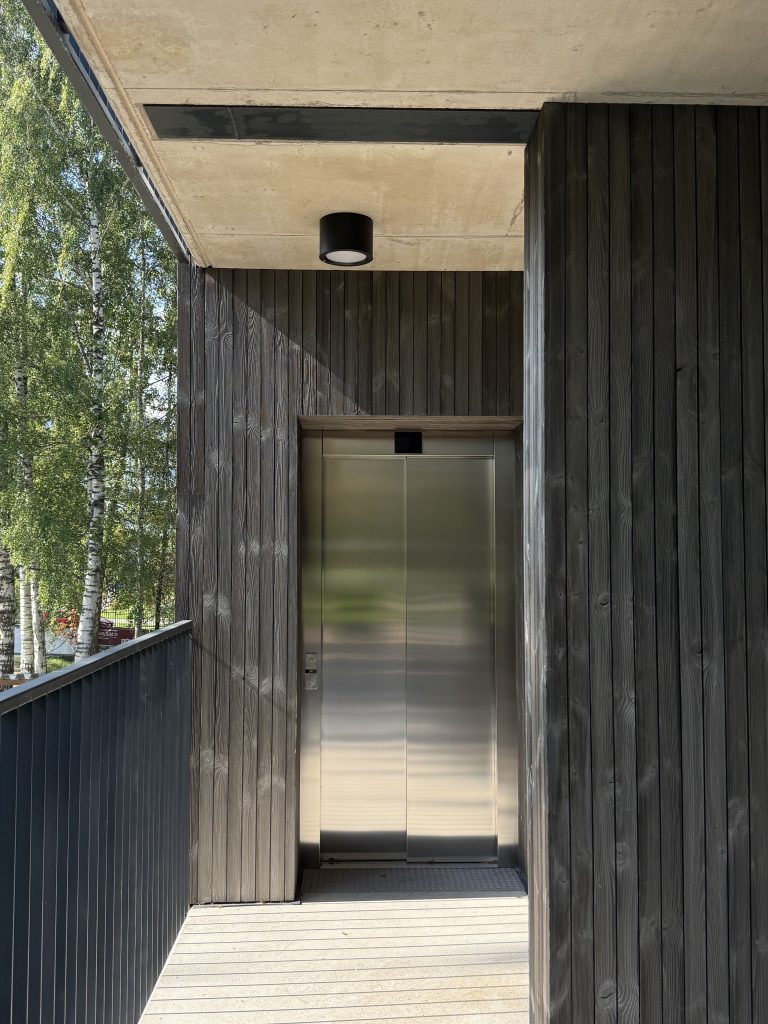 Nokļūšana līdz otrā un trešā stāva apartamentiem notiek pa svaigu gaisu, ko nodrošina galerija – garš balkons gar celtnes fasādi. Pirmajā stāvā ieeja no bruģēta ceļiņa.