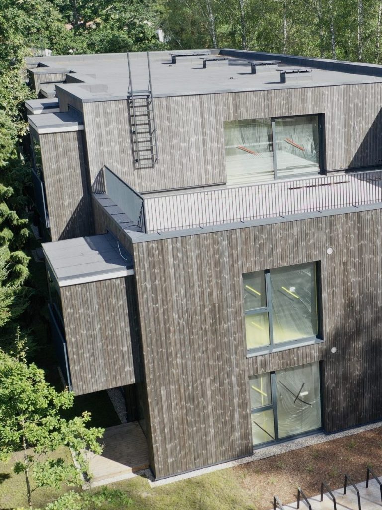 Pirmā stāva apartamentiem uz ziemeļu pusi ir terase uz zemes ar zaļo zonu līdz pat 37 m2 platībā.