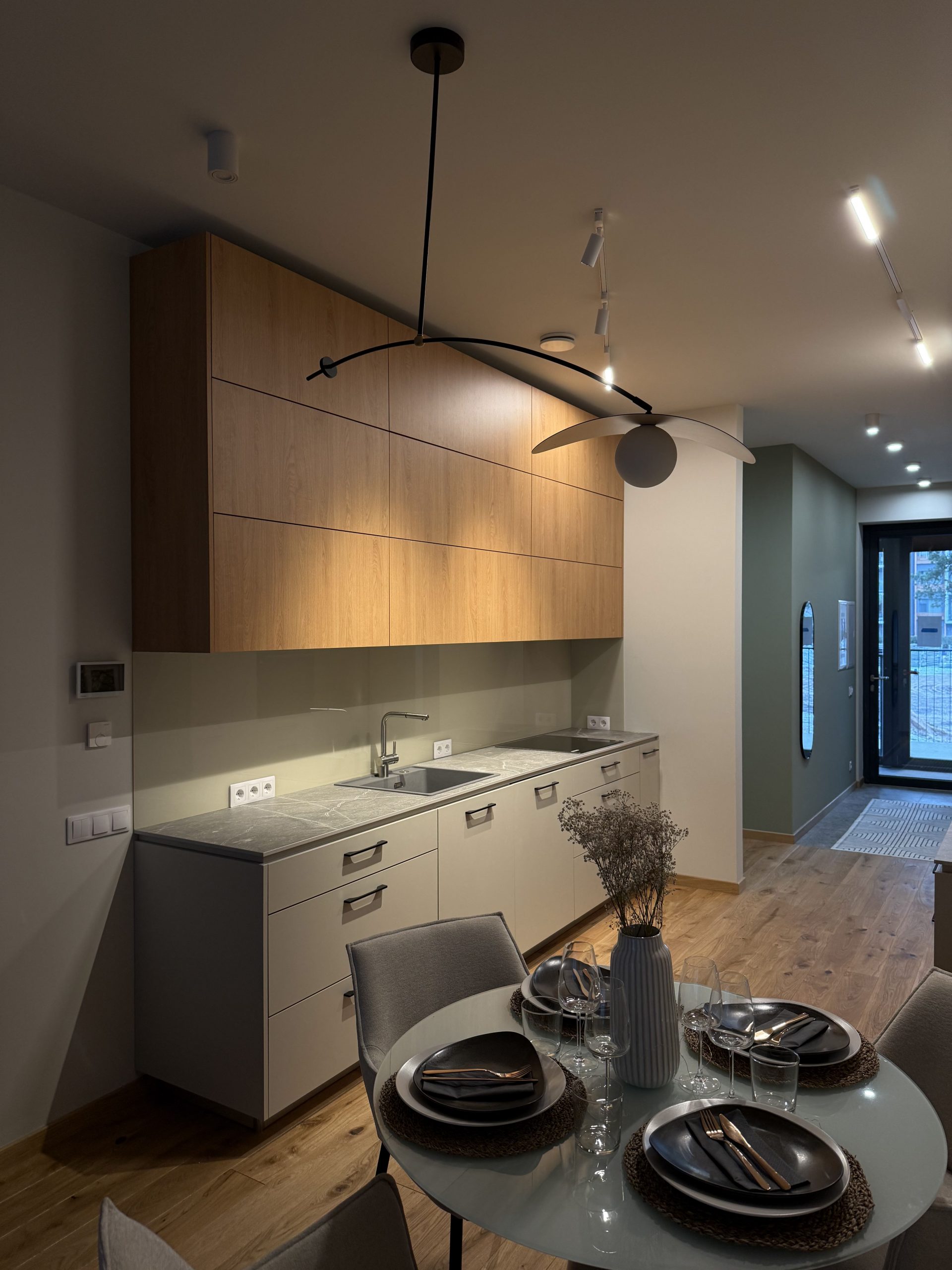 Otrā stāva trīsistabu demo apartamentam (Nr. 12) interjeru veidoja arhitekte un interjera dizainere Renāte Bāliņa.
